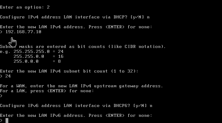 输入N ,不在LAN接口配置DHCP服务器